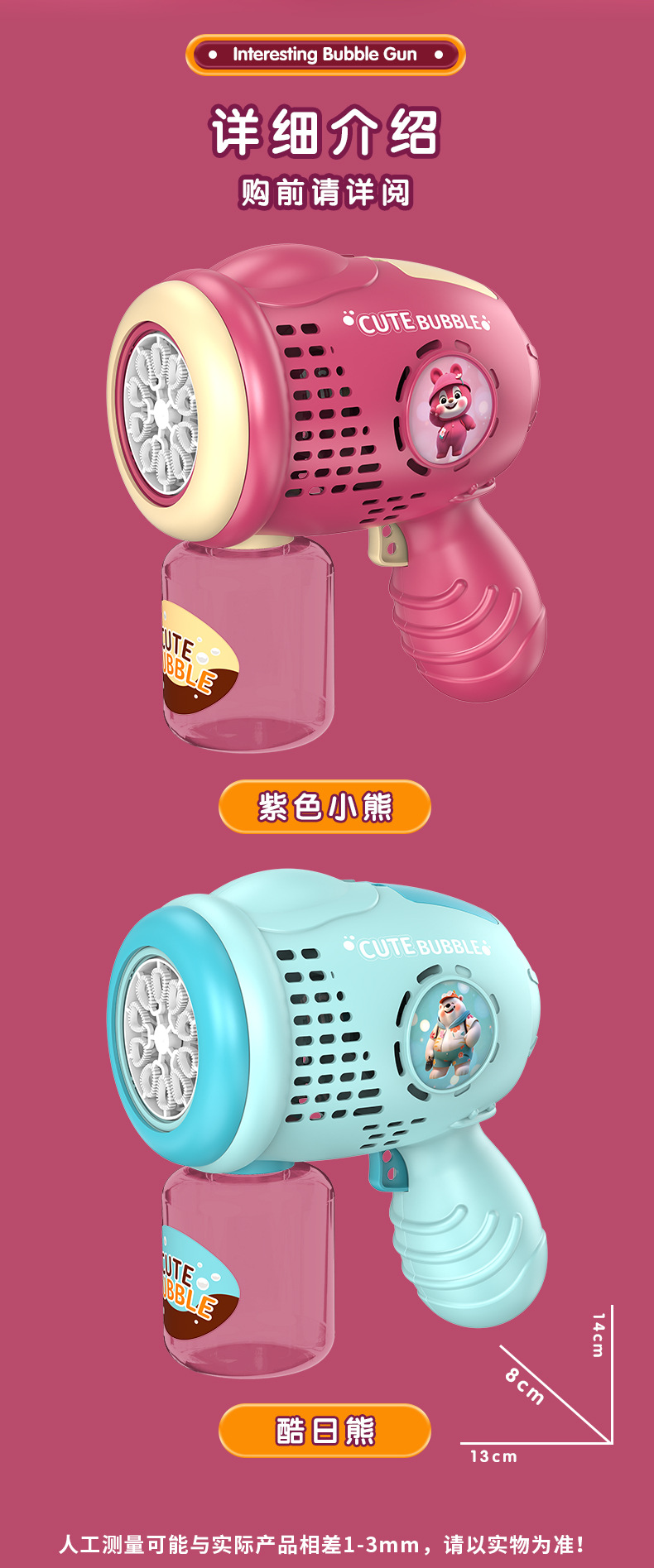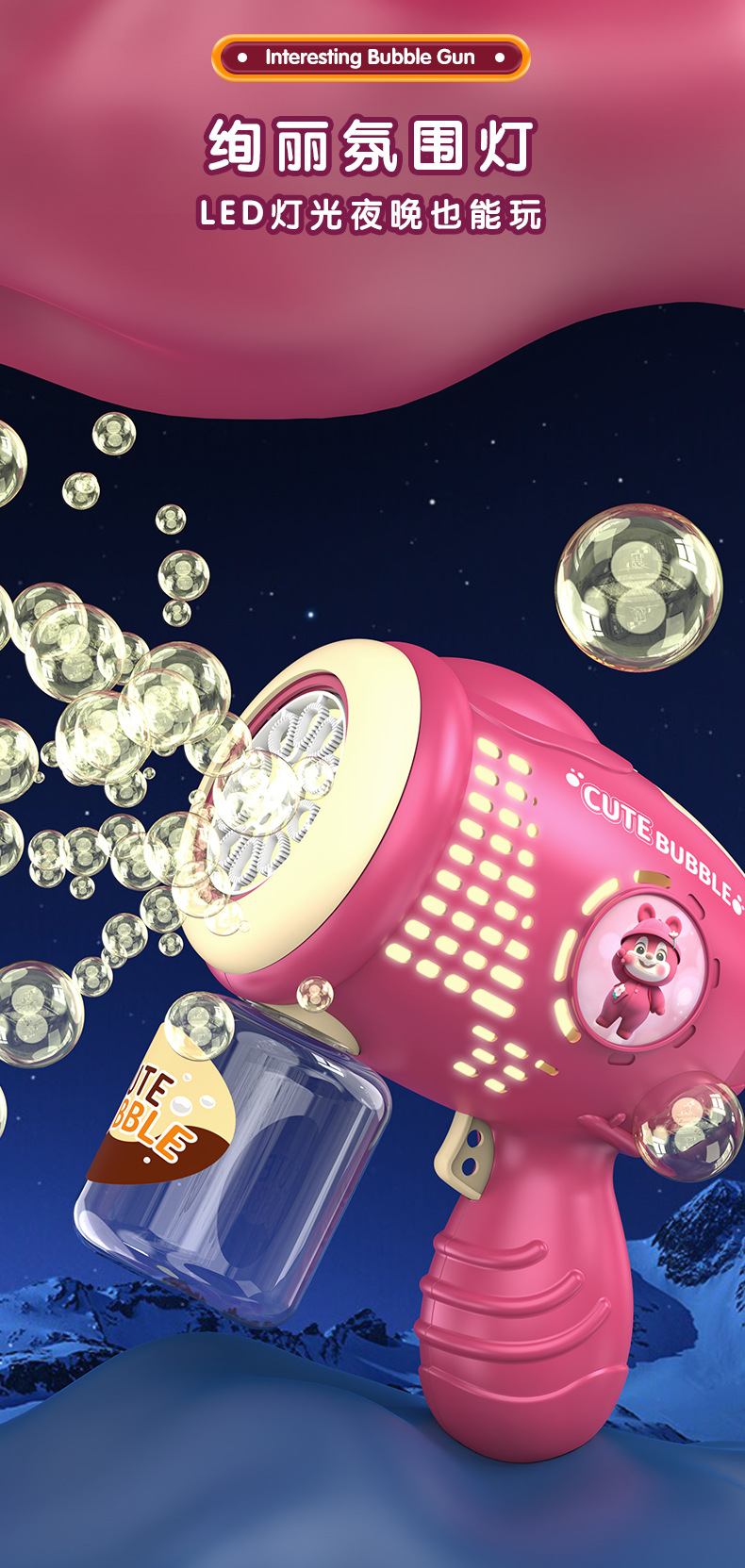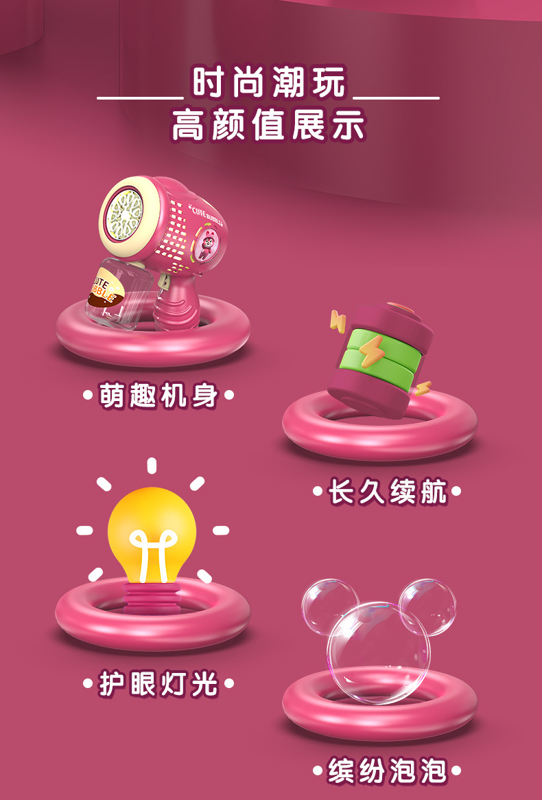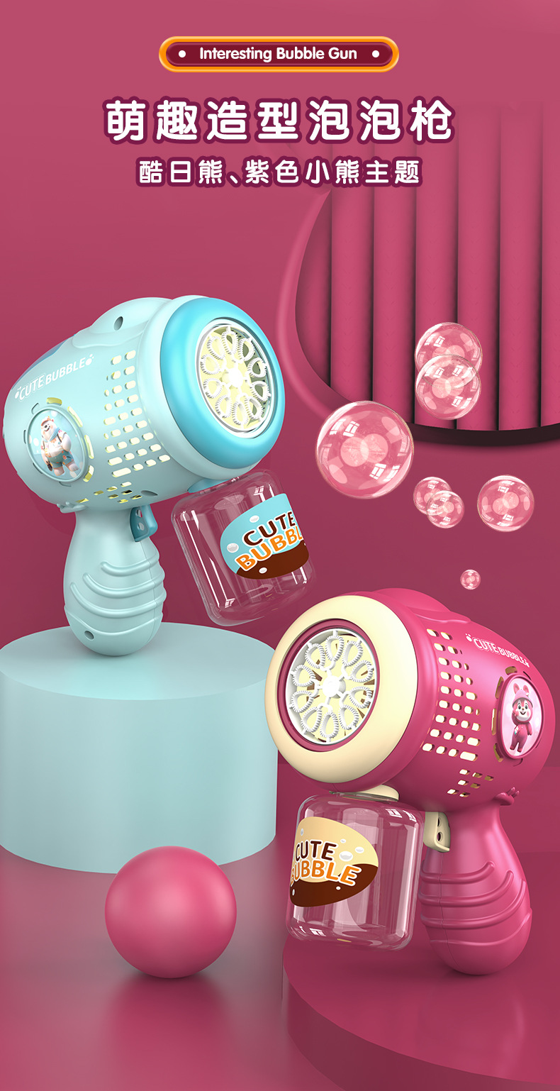 Cute Little Bear Bubble Machine, Children's Toys, Electric Luminous Bubble Sticks, Bubble Guns, Park Street Vending, Parent-Child Interaction