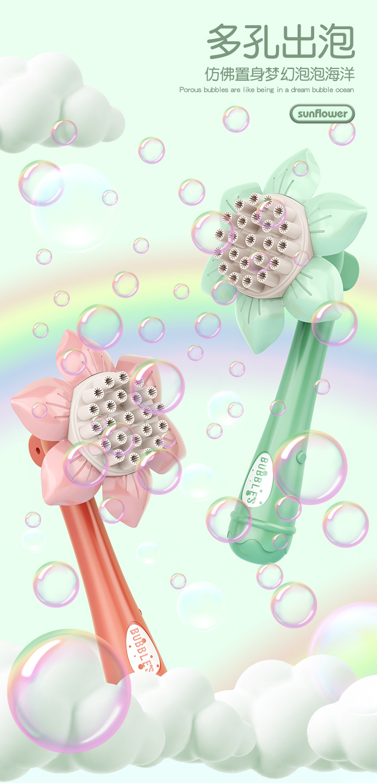 Douyin's Best-Selling Sunflower Fan Bubble Stick, 23-Hole Bubble Machine, Children's Toys, Park Street Stall, Wholesale Supply